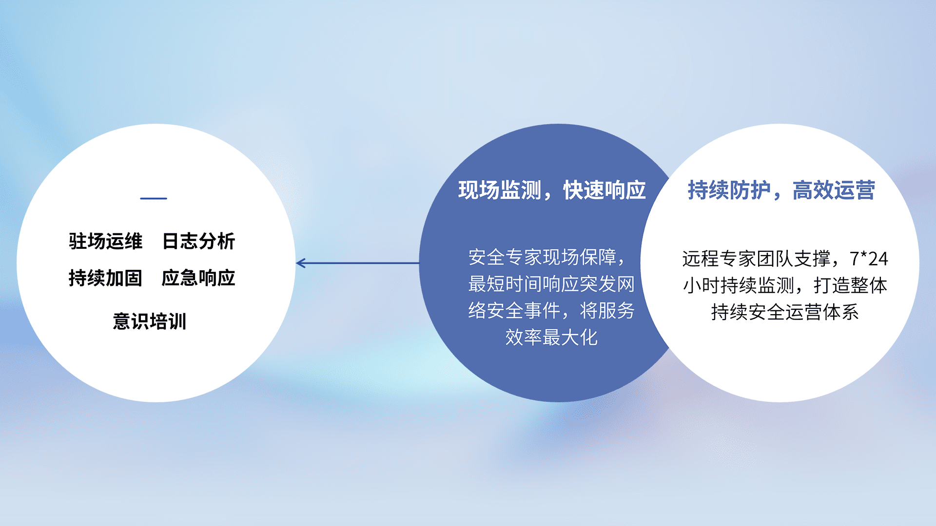 7X24小时持续监测安全事件,保持安全策略有效性,降低资产脆弱性风险,,精准拦截黑客攻击,,,,减少被黑客利用的机会,,,第一时间遏制,,,降低损失。。。。